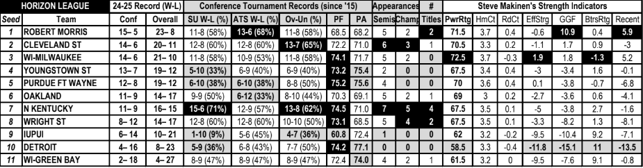 Makinen Power Ratings for Horizon League