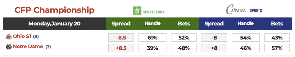 Prior to the playoffs, I bet Notre Dame at 10-1 and 12-1 odds to win the championship, and I’ll be looking to hedge during live betting. The pregame moneyline of -380 on Ohio State is too high, and I want a lower price.