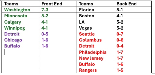 NHL: Look for Jonathan Davis‘ picks later today. He emailed me: On Sunday, the Detroit Red Wings dropped to 0-10 when playing on consecutive days. Detroit has lost all five games both on the front end and back end of back-to-backs. Monday the Buffalo Sabres are at Seattle on the front end of a back-to-back. The Sabres are just 2-12 when playing on consecutive days. Here is a breakdown of the NHL’s best and worst when playing on consecutive days this season.