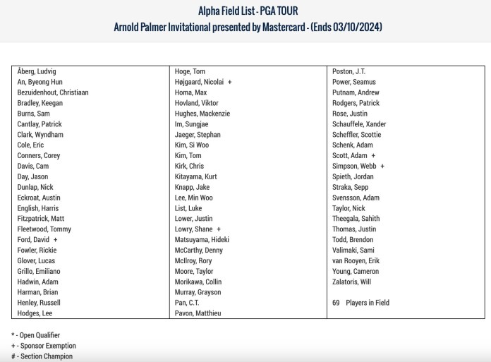 The 69-player field is comprised of players that meet the following criteria: