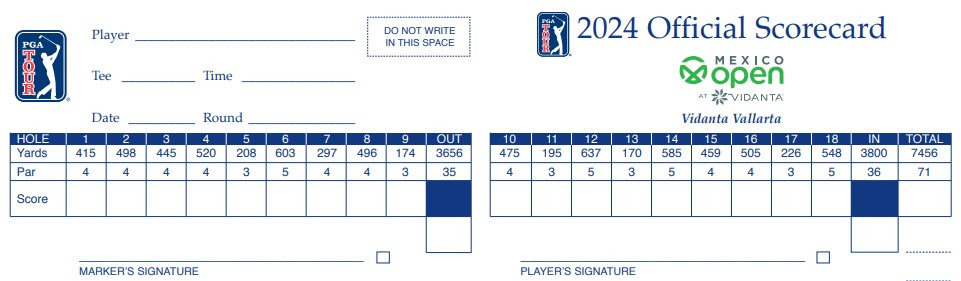Vidanta Vallarta is a par-71 course that measures 7,456 yards. It ranks as the sixth-longest course on the PGA Tour. It is a unique track that has five par-3s to go with four par-5s and only nine par-4s. While the par-3s are average in length, five of the par-4s are over 475 yards and three of the par-5s are over 585 yards.