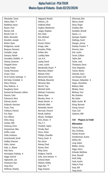 Here is the 132-player field for the Mexico Open at Vidanta: