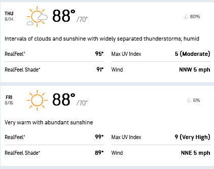 The AccuWeather forecast shows that the Baltimore area will get some rain on Wednesday and for Thursday’s opening round. The heat should keep the course firmer and faster than it was in 2021.