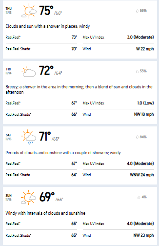 Bermuda has had a lot of precipitation over the last month because of Hurricanes Imelda and Melissa, so the course should be soft. However, per the AccuWeather forecast, windy conditions are expected, and they have affected scoring here before. In calm conditions, mid-20s under par is the norm. With conditions as they are likely to be this week, scoring may end up closer to the mid-teens than the mid-20s.