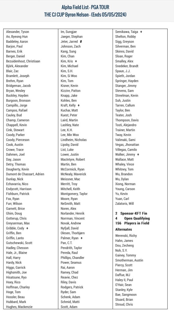 156 players make up this week’s field at THE CJ CUP Byron Nelson.