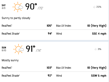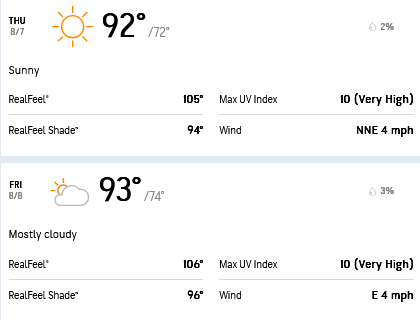 The AccuWeather forecast is fairly self-explanatory for this time of year in Memphis. It is early August, so this is one of the hottest events of the season.