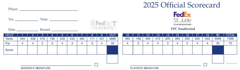Here is the official FedEx St. Jude Championship scorecard courtesy of PGATOUR.com: