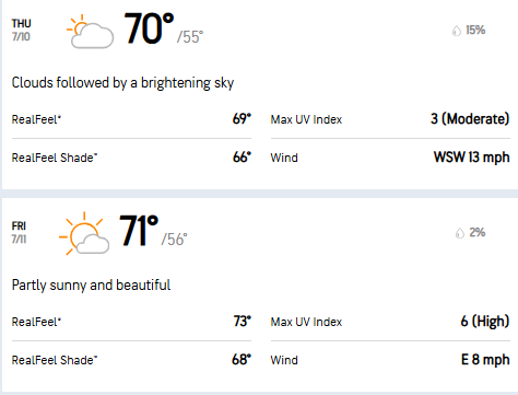 The AccuWeather forecast looks ideal and certainly provides a respite for the players who have been playing in hot and humid conditions stateside. These conditions likely indicate that we should expect better scoring as opposed to 2020 and 2022 with much windier conditions.