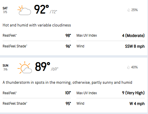 The AccuWeather forecast indicates a fairly typical one for the John Deere Classic. Hot and humid.