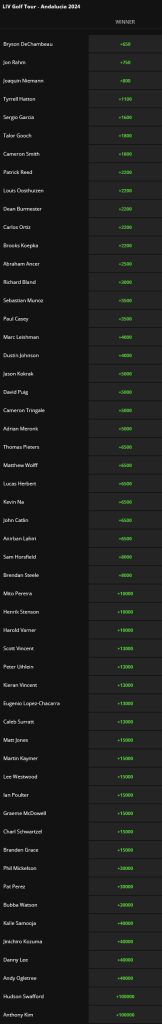 Here is the 54-player field for LIV Andalucía with Draft Kings odds: