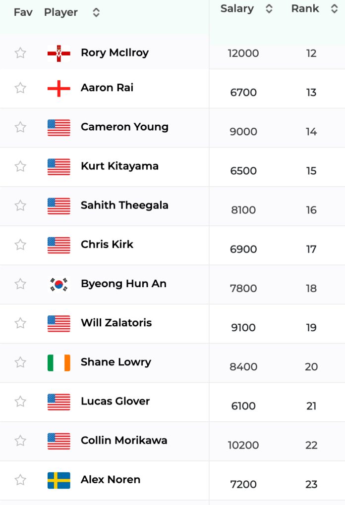 Alex Noren and Aaron Rai both finished Round 1 at 3-under par, and tied for 18th. Multiple versions of my model (seen below) had them ranked highly for this tournament for the skills that I plugged in and weighted heavily. If you believe the algos, maybe their success is sustainable. (shout to BetSperts and RickRunGood for the model framework).