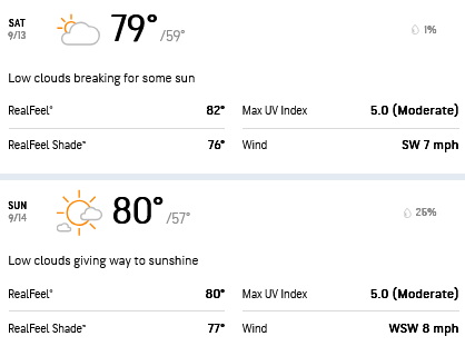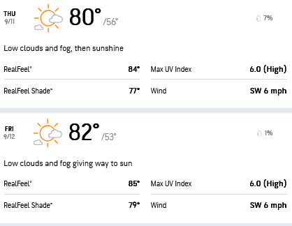As one would expect for this time of the year, the Accuweather forecast shows fairly ideal conditions in Napa Valley this week.