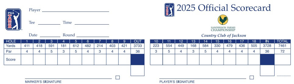 The Country Club of Jackson in Jackson, Miss., has hosted the Sanderson Farms since 2014. CC of Jackson was designed in 1962 by Dick Wilson and redesigned by John Fought and Mike Gogel in 2008. The track plays as a par-72 of 7,461 yards and there are only 56 bunkers and seven water hazards (in play on five holes). The Bermuda fairways are flat and relatively narrow (seventh-narrowest on tour — 29 yards average fairway width). The Bermuda/Zoysia rough is not all that penal at just 2.5 inches.