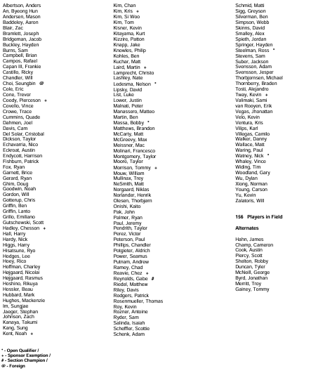 Here is the 156-player field courtesy of PGA Tour Communications: