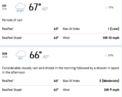 The weather in recent weeks leading up to The Open has been warmer, and the course has dried out. Intermittent rain is expected throughout the event, but the course will likely play firmer and faster than it did for the 2019 Open.