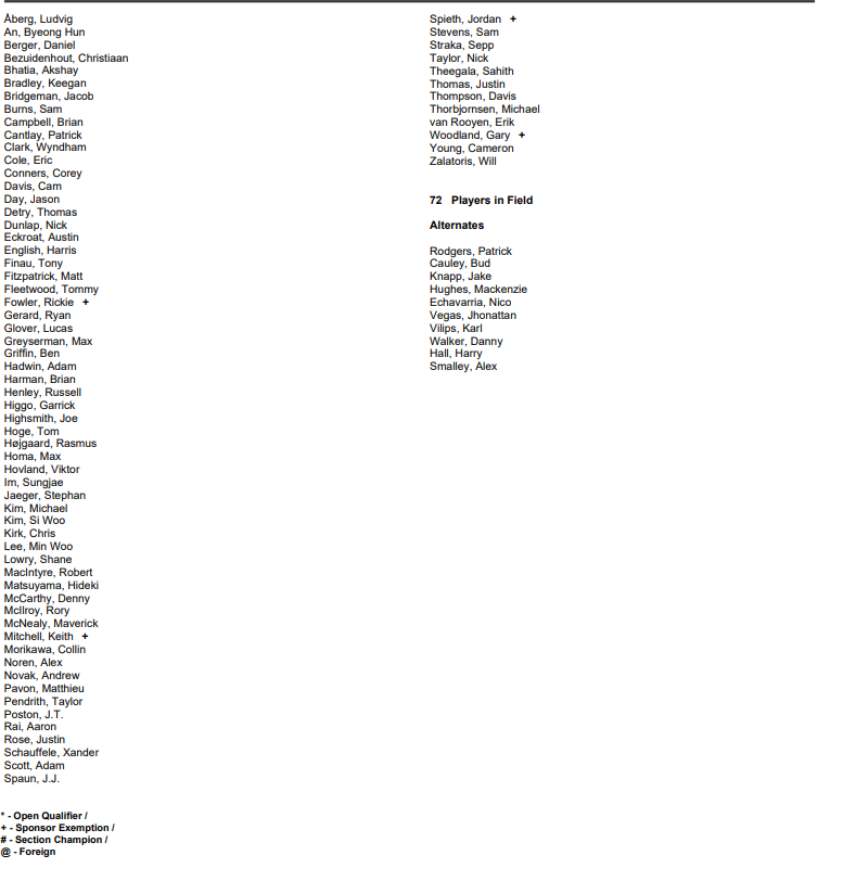 Note: Jason Day WD on Tuesday and Patrick Rodgers is now in off the alternate list.