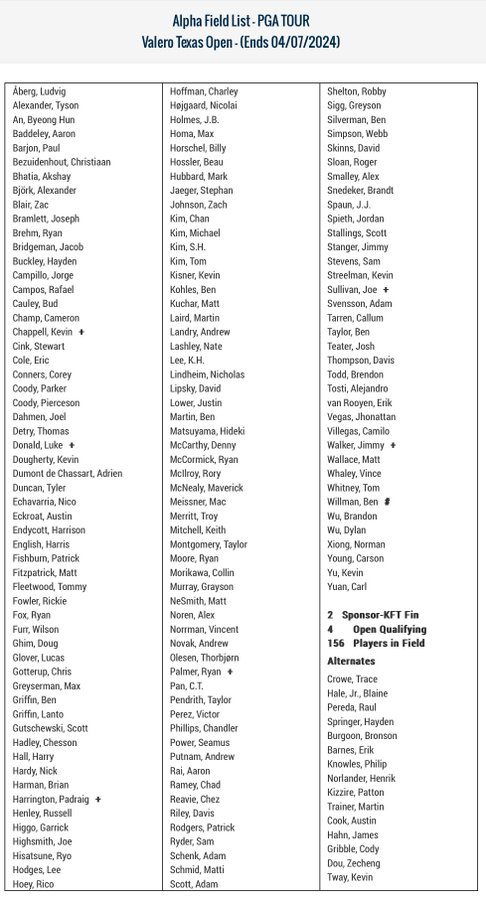- Matt Wallace withdrew on Saturday; Trace Crowe IN as first alternate.