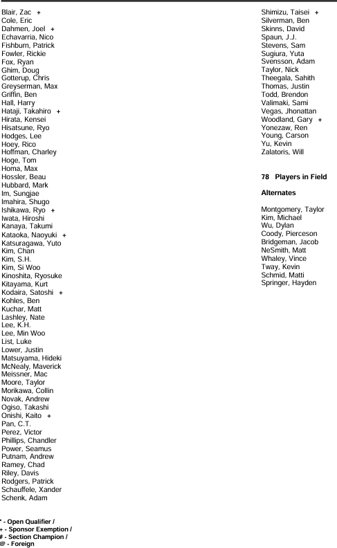 78 players are in this week’s no-cut field and here is how the field is comprised:
