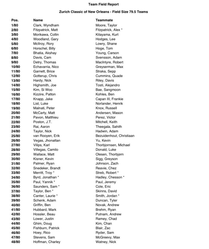 Here are the 80 two-man teams for the Zurich Classic of New Orleans:
