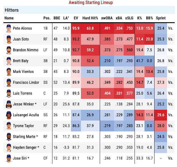 All things considered, these look like the best spots on the board. The pitching matchup in New York is too tough, and the park conditions in Baltimore and Pittsburgh aren’t doing hitters any favors. The Rangers are worth a look, sure—but I like our chances better with the other teams today.