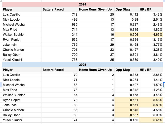 I threw some stats together below simply taking a look at home runs given up per batters faced.