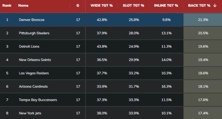 Despite their lead back and primary pass-catching RB in 2024 being the aforementioned washed Javonte Williams, the Broncos led the NFL in target share to the backfield (21.3%).