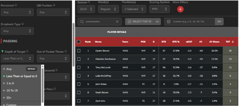 That fell to just 6.0 in 2024, or even further to 3.9 without Dyami Brown and Olamide Zaccheaus, neither of whom are on the Commanders in 2025.