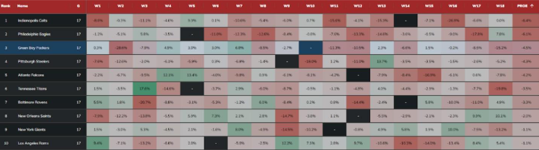 The Fantasy Points Data Suite is the most valuable tool available for bettors and fantasy managers alike. To back up that claim, I’ve used it to pull a stat for all 32 NFL teams with major fantasy football or betting implications.