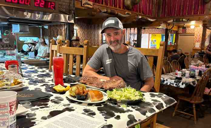Dave left Las Vegas right after Friday’s show and is making the most of his travels. He sent me photos from The Big Texan in Amarillo, where he took on the 72-ounce Free Steak Challenge. (It’s free if you finish in 60 minutes.)