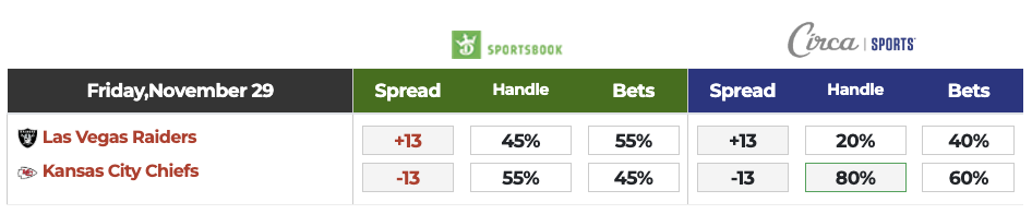 >DraftKings/Circa Betting Splits.