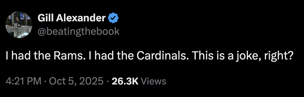 The week started with 12,404 entries and ended with 4,669. Just when everyone thought the Rams’ OT loss on TNF couldn’t be topped, along came the Cardinals, backed by 3,152 entries.